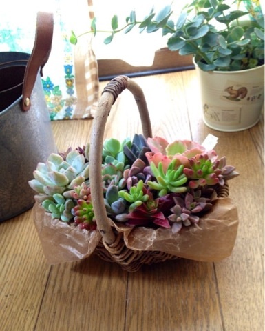 久しぶりにカゴに寄植え。